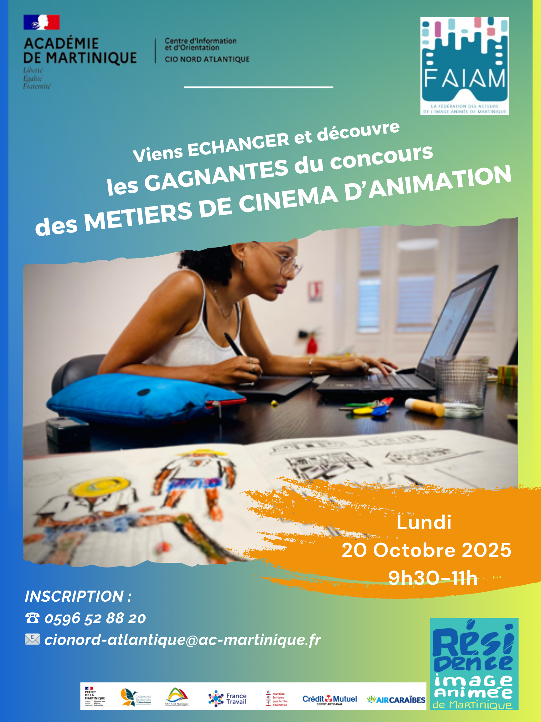 La FAIAM (Fédération des Acteurs de l’Image Animée de Martinique) en partenariat avec le CIO NORD ATLANTIQUE organise UN ATELIER PENDANT LES VACANCES DE TOUSSAINT qui aura lieu le: